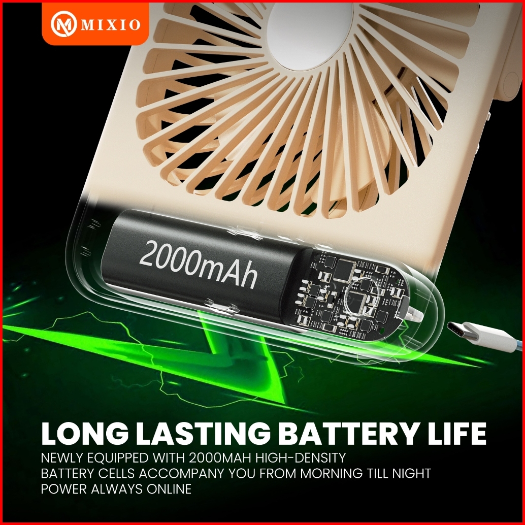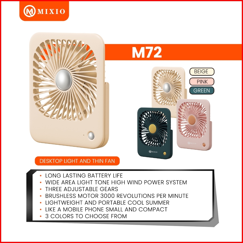 Mixio M72 Kipas Angin Portable 2000mah Fan Portable Desktop Fan Minimalist Stand Gantung Super Slim