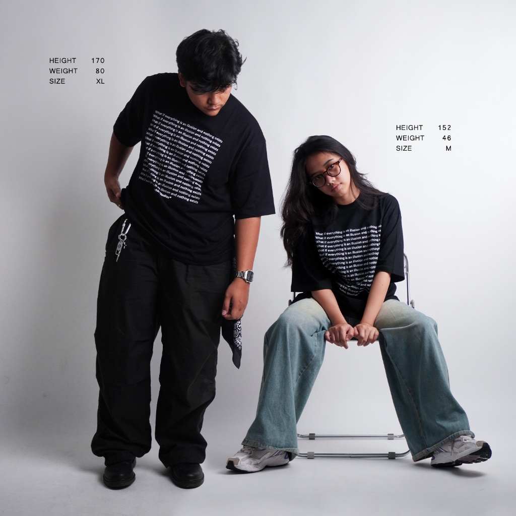 Iluthic - Oversized Boxy Tshirt 'What If?' Black Lengan Pendek