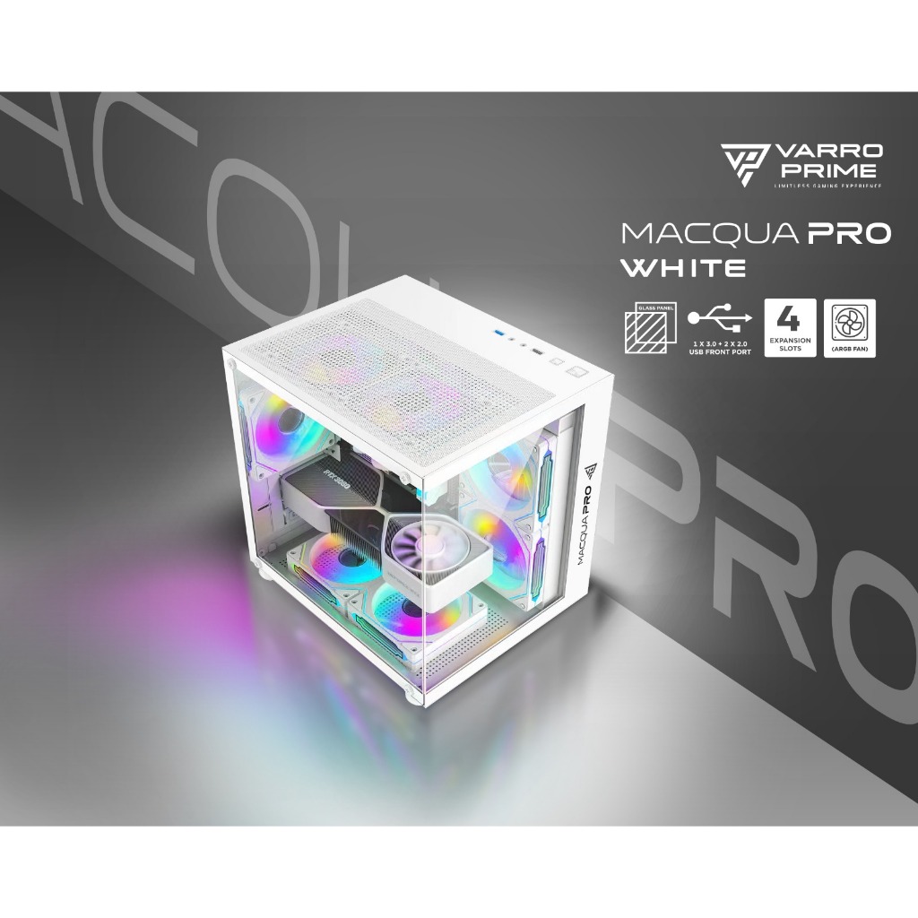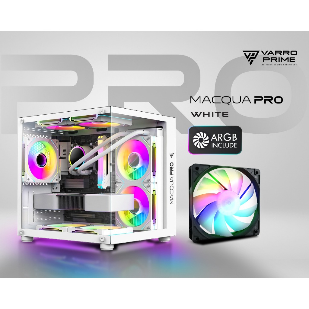 Casing PC Gaming Varro Prime Macqua Pro M-ATX Free 3 Fan RGB Tempered Glass