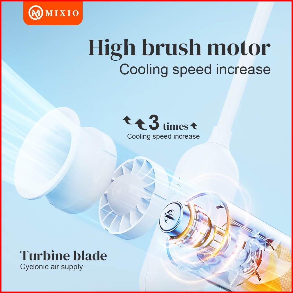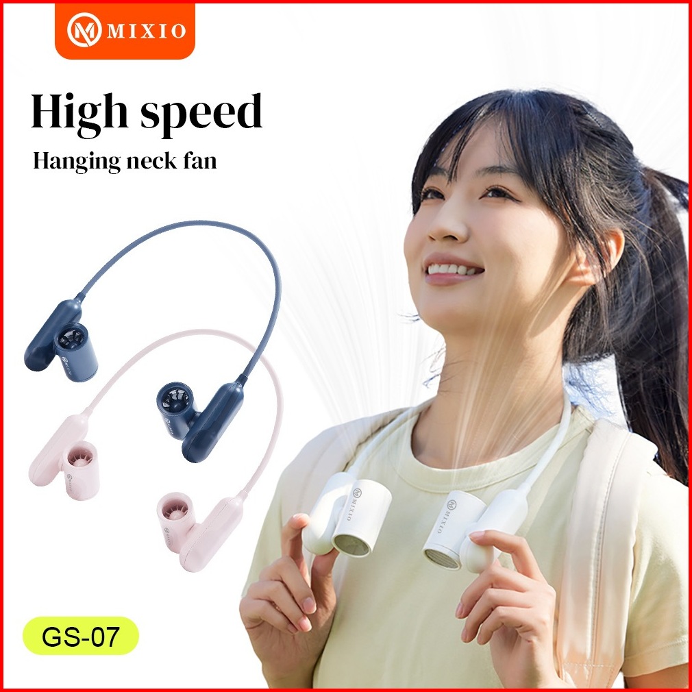 Mixio Gs-07 Premium High Speed Neck Dual Turbo Fan Portable Strong Kipas Angin Leher Adjustable Turbo Kipas Untuk Olahra