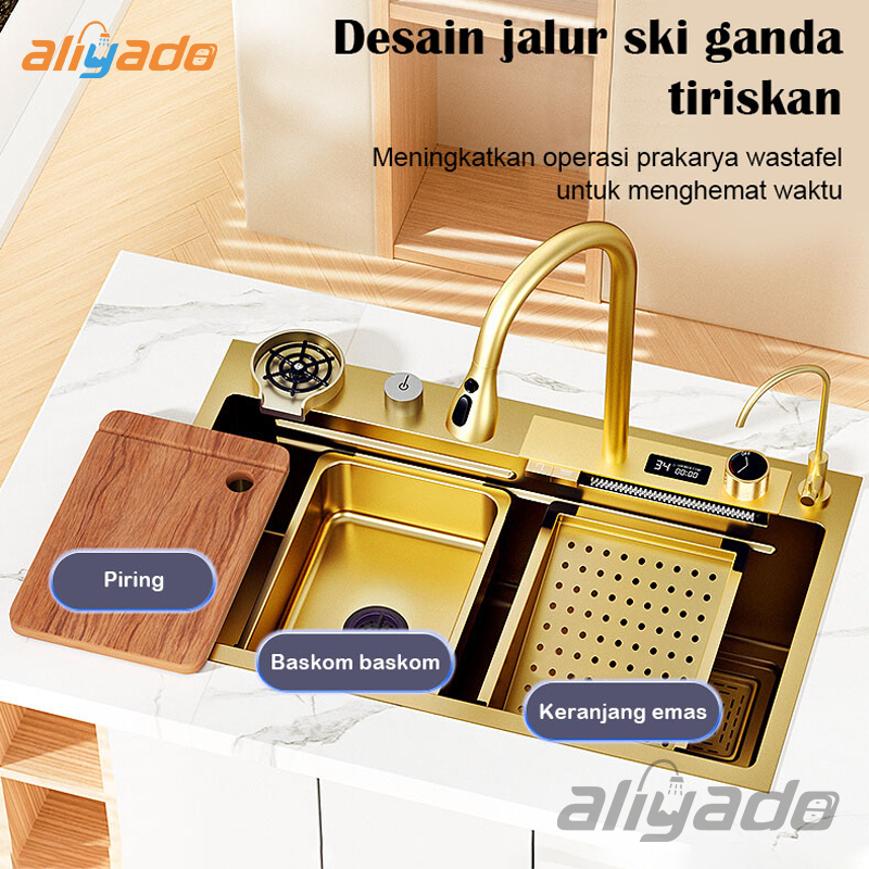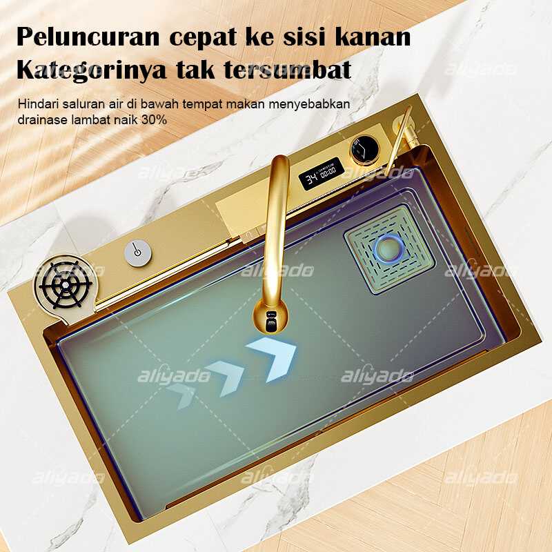 Ready Kitchen Sink Ema5 Piano 2 Tuts Stainless Steel 304 Luxury Wastafel Lcd & Led Includes Tempat Ukuran 75X45 & 80X