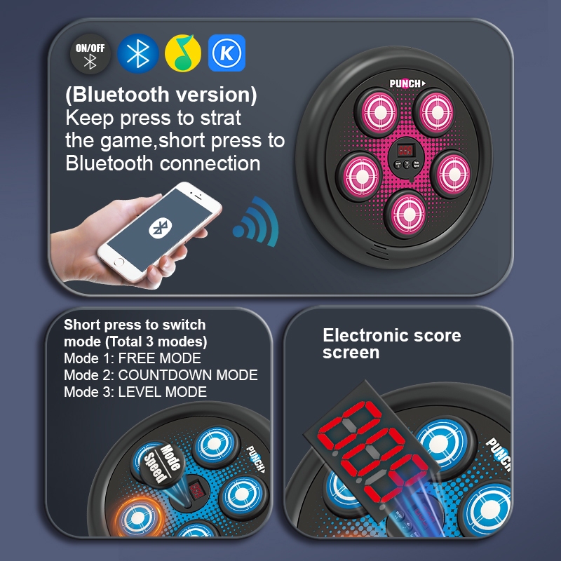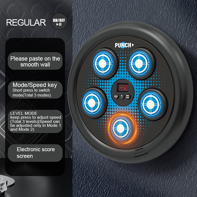Music Boxing Machine Bluetooth Wall Target Digital Display Baterai Cas Free Sarung Tinju Lampu