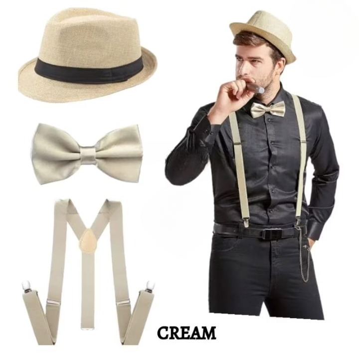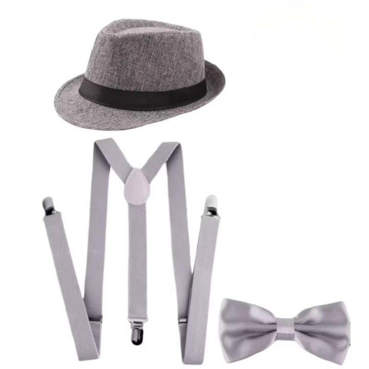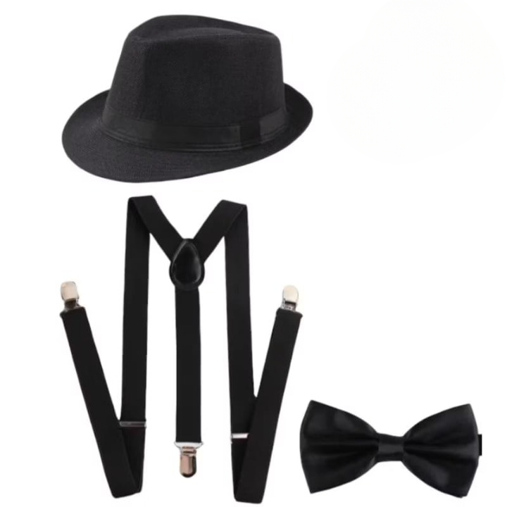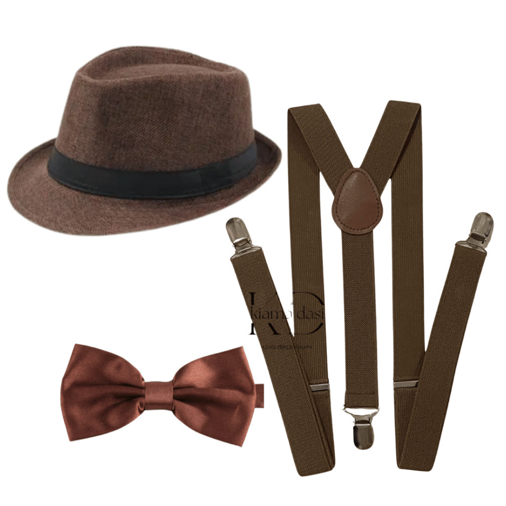 Paket 3 In 1 Suspender + Dasi Kupu Kupu + Topi Fedora Dewasa Dan Anak