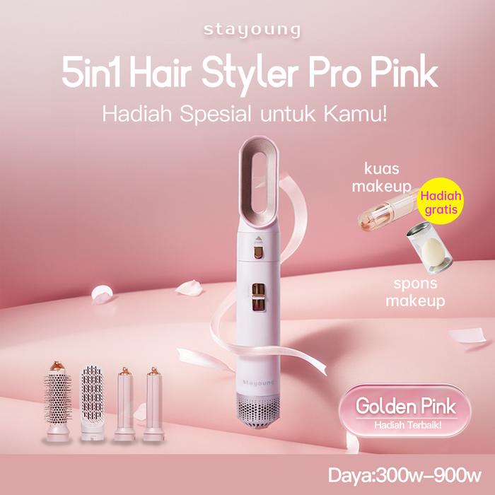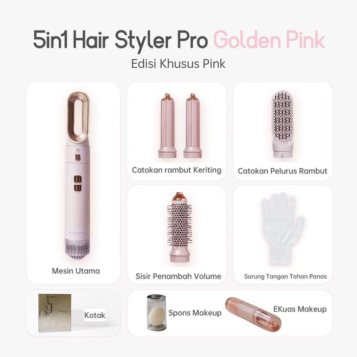 Edisi PinkSTAYOUNG 5-in-1 Hair Styler Pro, Edisi Spesial Golden Pink Alat Penata Rambut Multifungsi