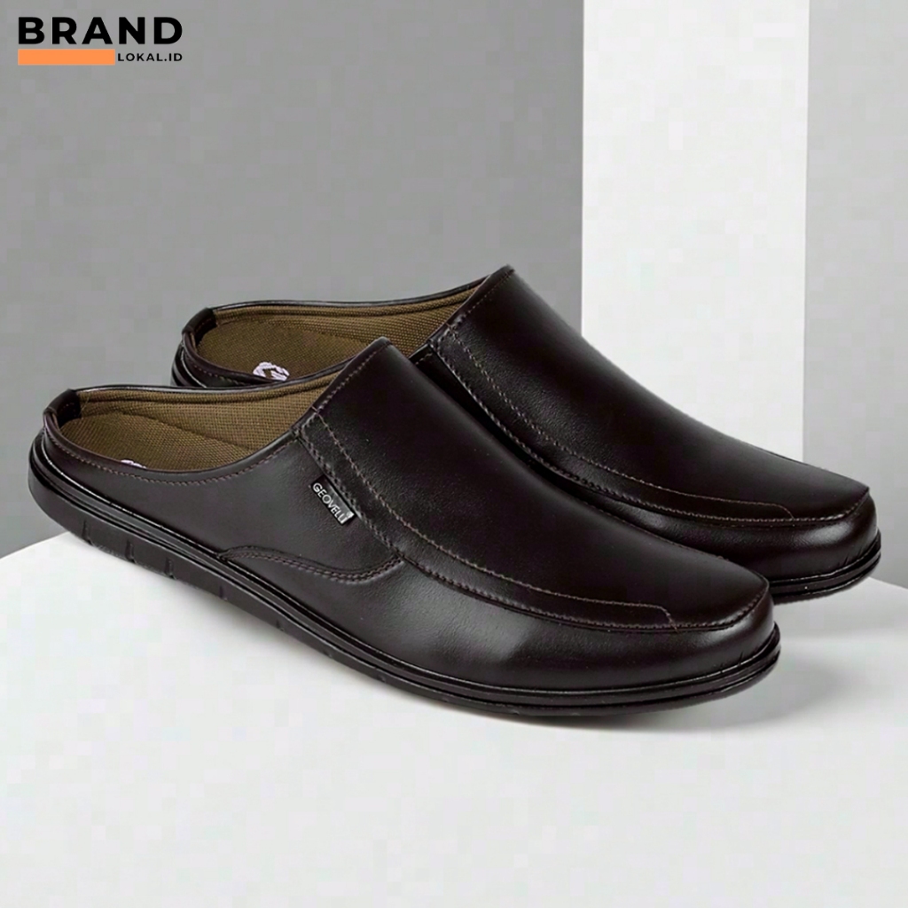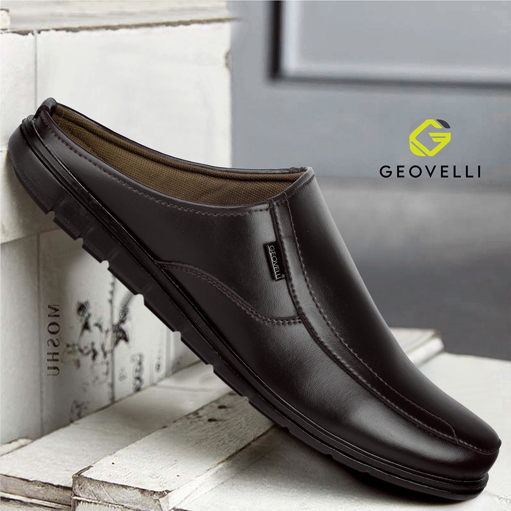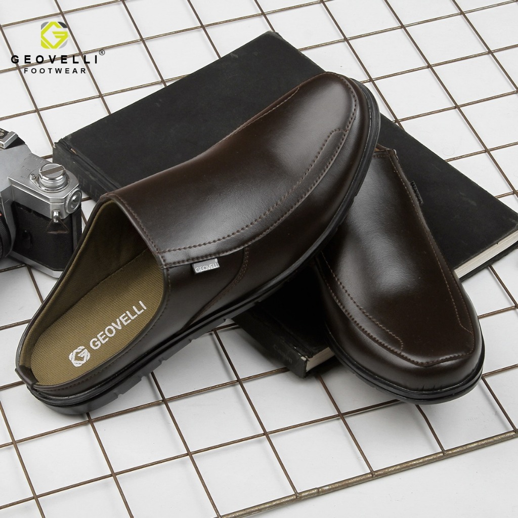 Sepatu Kulit Pria Sandal Slop Cowok Sepatu Bustong Sepatu Formal Gvl. Geovelli Coklat Kopi