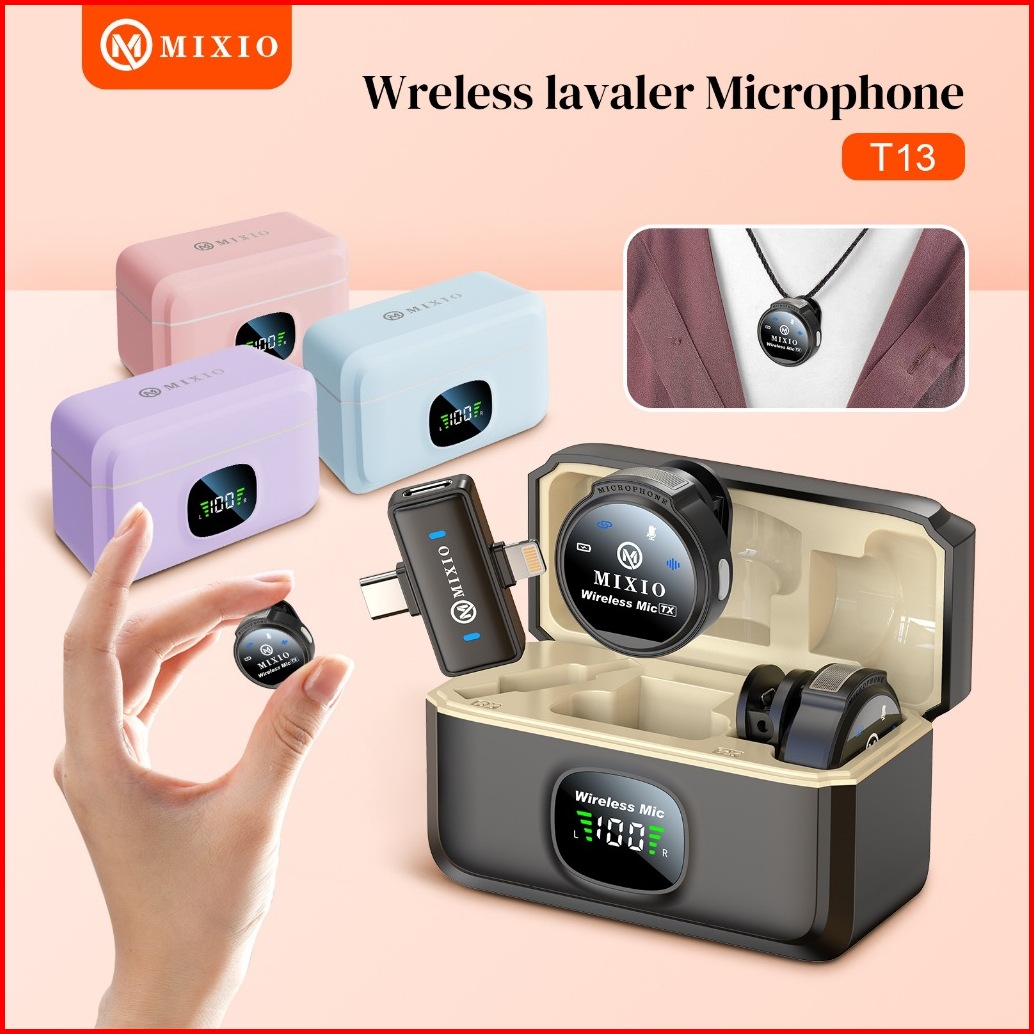 Mixio T13 Magnetic Wireless Microphone 2-in-1 Clip On Mic Magnetic Mikrofon Hp Plug Play Dual Lavalier Microphone With C