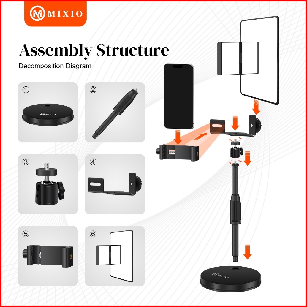 Mixio S100 Magic Mirror Stand Streaming Kaca Berdiri Cermin Untuk Dengan Kamera Belakang Untuk Video Pakai Kamera Belaka
