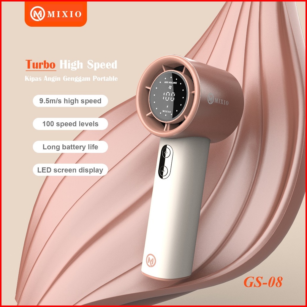 Aff Mixio Gs-08 High-speed Portable 17000rpm Handheld Fan 4400mah Mini Kipas Strong Wind 100 Gear Wind Speed Kipas Angin