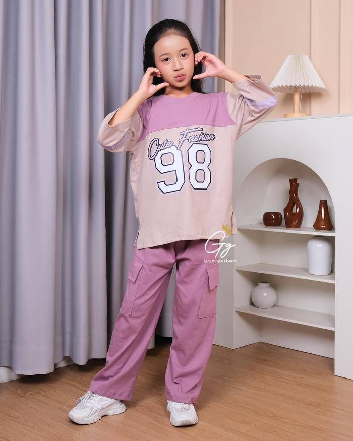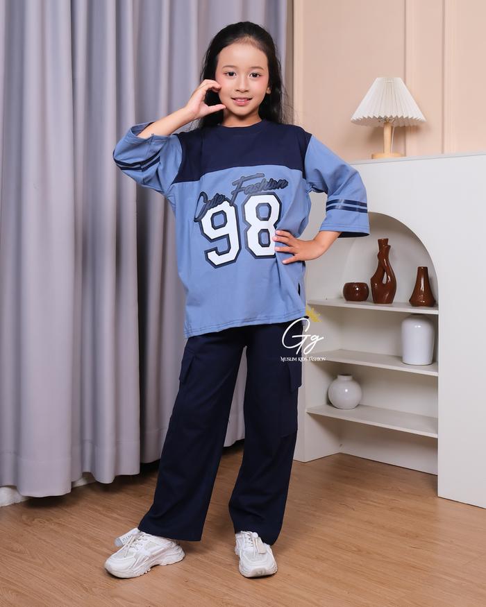 Setelan Anak Perempuan Sporty Casual Kaos Lengan Panjang Motif 98 Dan Celana Cargo 3-14 Tahun Fashion Nyaman Dan Gaya Id