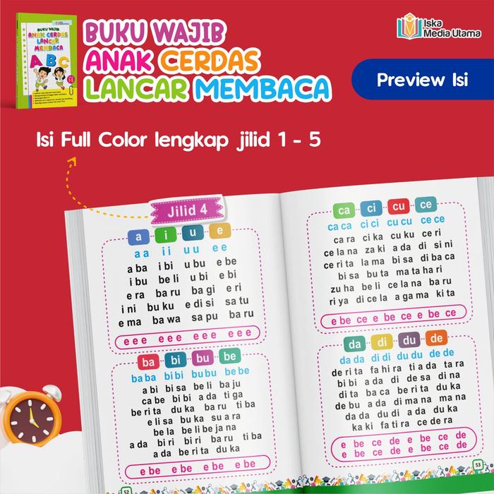 Iska Media Utama - Buku Wajib Anak Cerdas Lancar Membaca Lengkap Bonus Aktivitas Mewarnai Dan Menulis