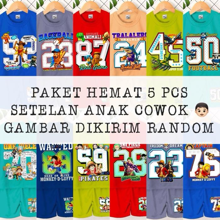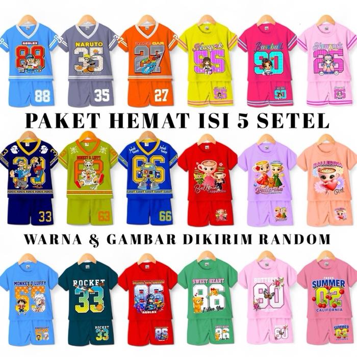 Paket Hemat Isi 5 Setel / Jersey / Angka / Baju Anak Laki-Laki / Baju Anak Perempuan / Murah - Cowok Semua, M Bb 7-9Kg