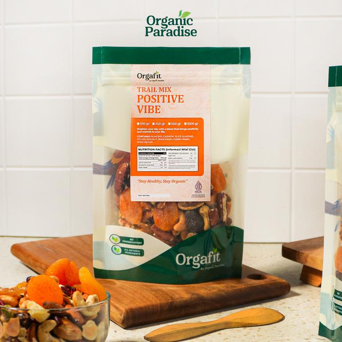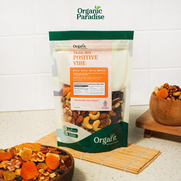 Trail Mix Nut Positive Vibe 1 Kg / Snack Kacang Mix Campur Positive Vibe 1 Kg Organic Paradise - Spesifikasi