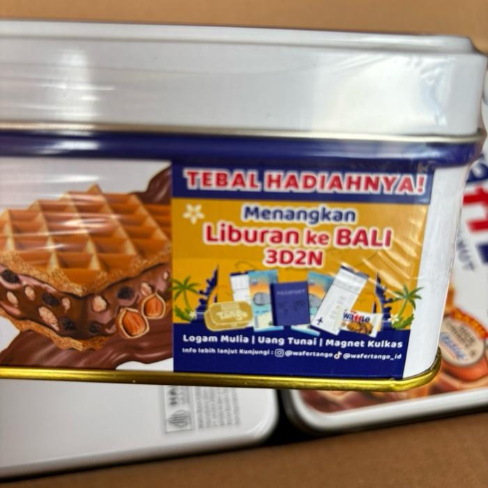 Agen Distributor Makanan Ringan Snack Hampers Lebaran Biskuit Waffle Tango Choco Hazelnut Kaleng Putih Tin Kotak Murah B