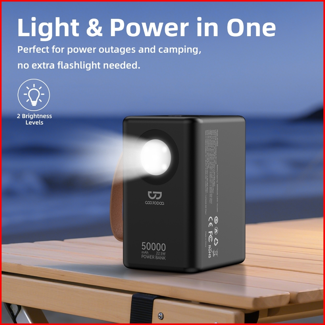 Goojodoq 22.5w 50000mah Wired Powerbank Large Capacity Fast Charging Type C Usb For Outdoor Hiking