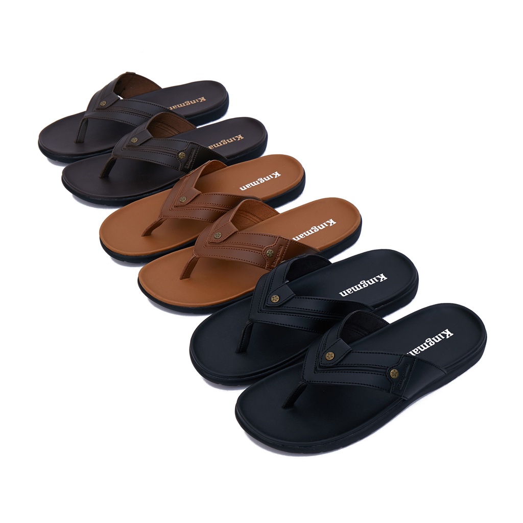 Kingman Sandal Pria Casual Leicester Premium Original Sendal Jepit Kulit Cowok Kualitas Import - Lc100
