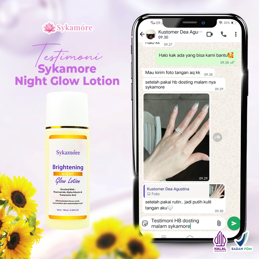 Sykamore Brightening Night Glow Lotion HB Dosting Pemutih Badan With Niacinamide & Alpha Arbutin