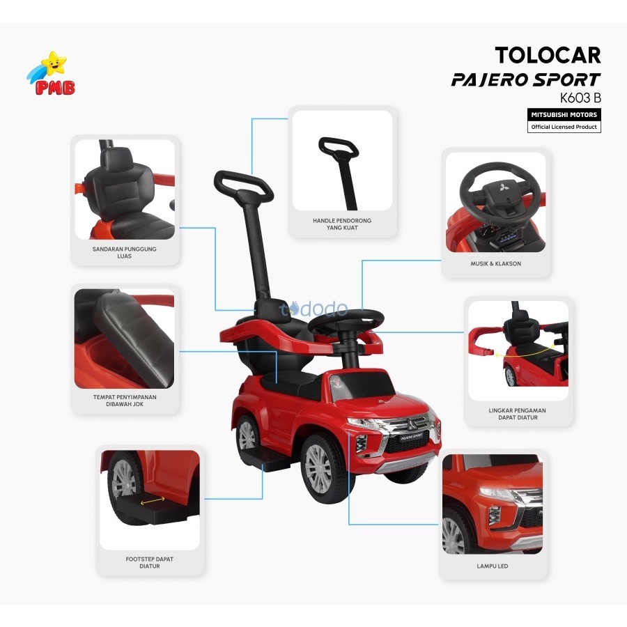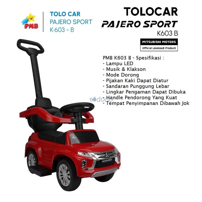 Mainan Mobil Dorongan Anak Tolo Car Tolocar PMB Pajero Sport K603 / K603B/ K603C