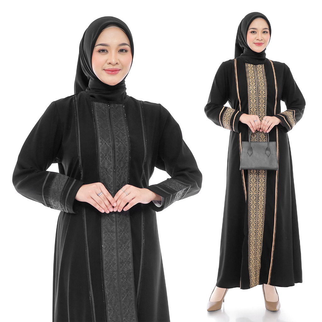 Abaya Maura Gamis Hitam Turkey Jetblack Bordir Payet Dress Lebaran Pesta Kajian Umroh 532