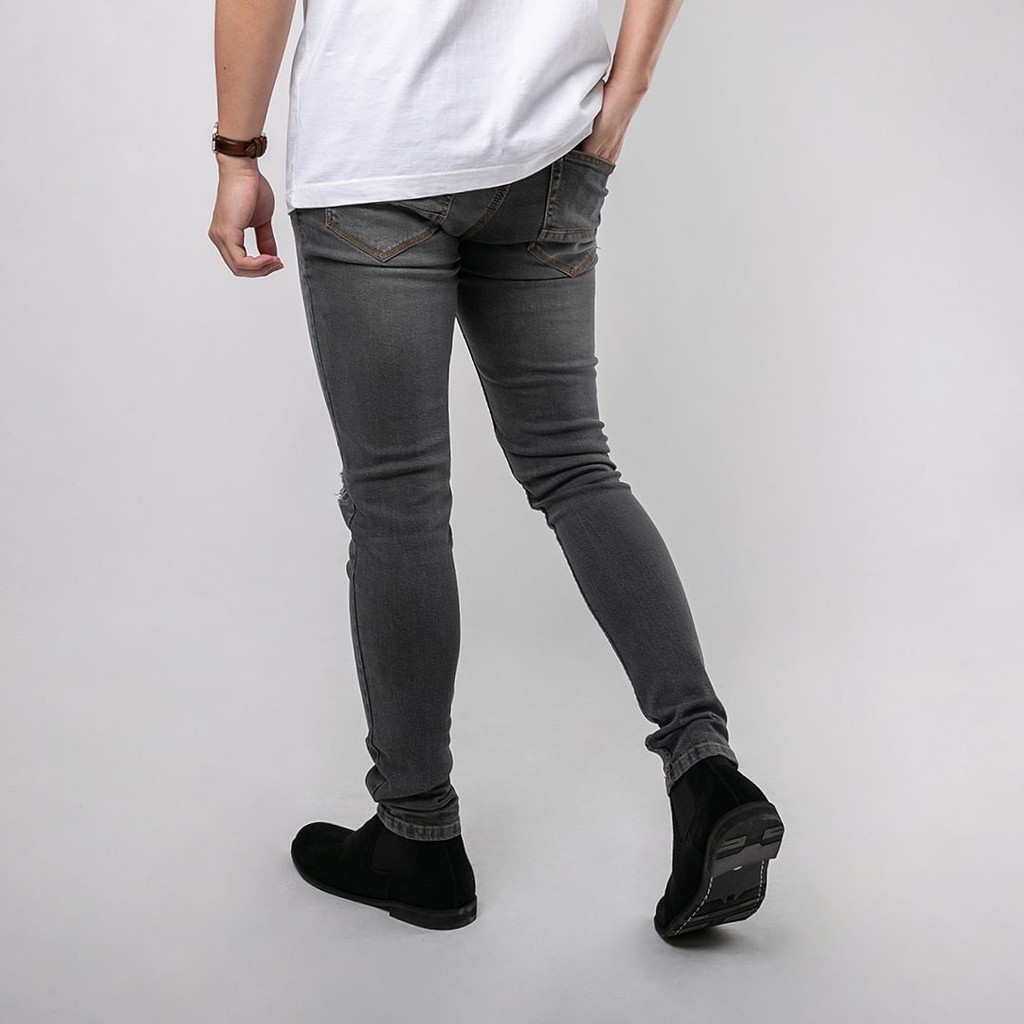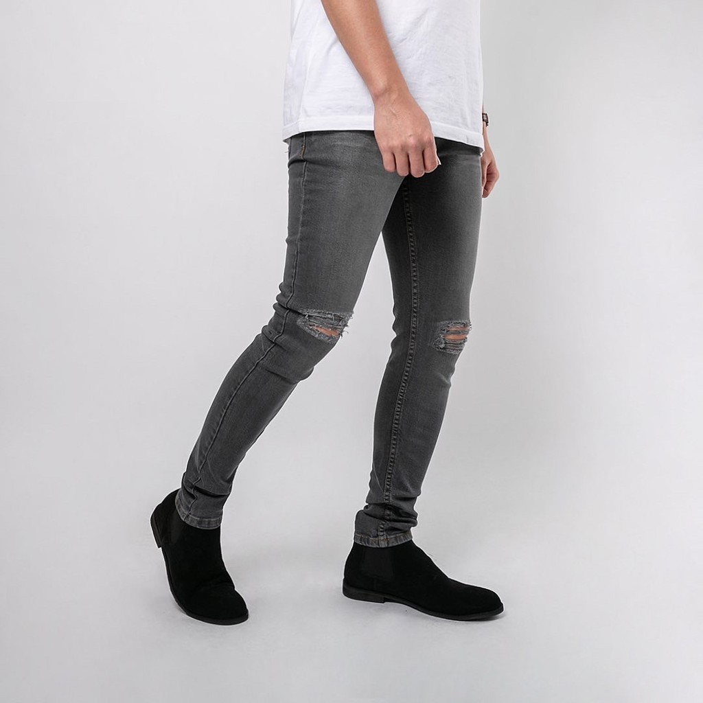 Celana Ripped Jeans Pria / Celana Jeans Sobek Bahan Stretch Denim - (Uj-17) - Dark Grey