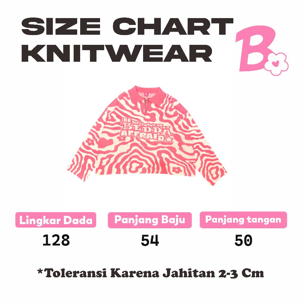 Bedda Knitwear Boxy Half Zipper Sweater - Neonna Pink Broken White Knit Rajut