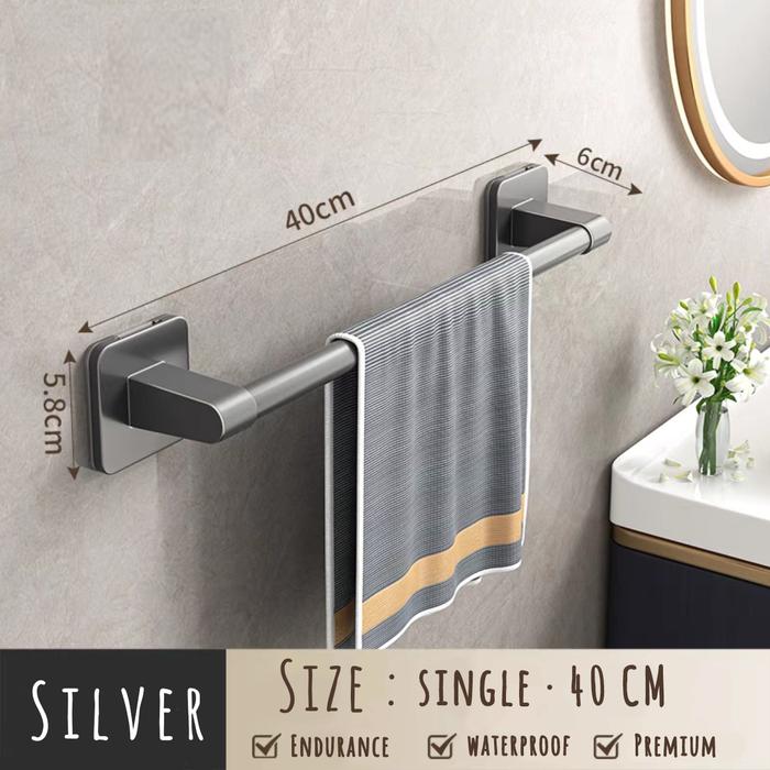 Gantungan Handuk Kamar Mandi Tanpa Bor / Towel Rack Kiraiya R006 - Single - 40 Cm