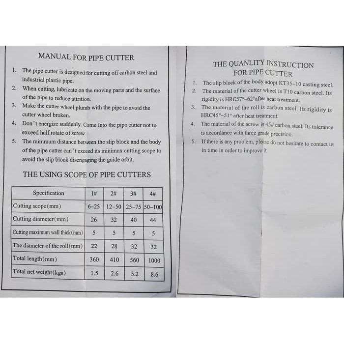 Alat Pemotong Pipa Besi 2" | Heavy Duty Pipe Cutters 2"