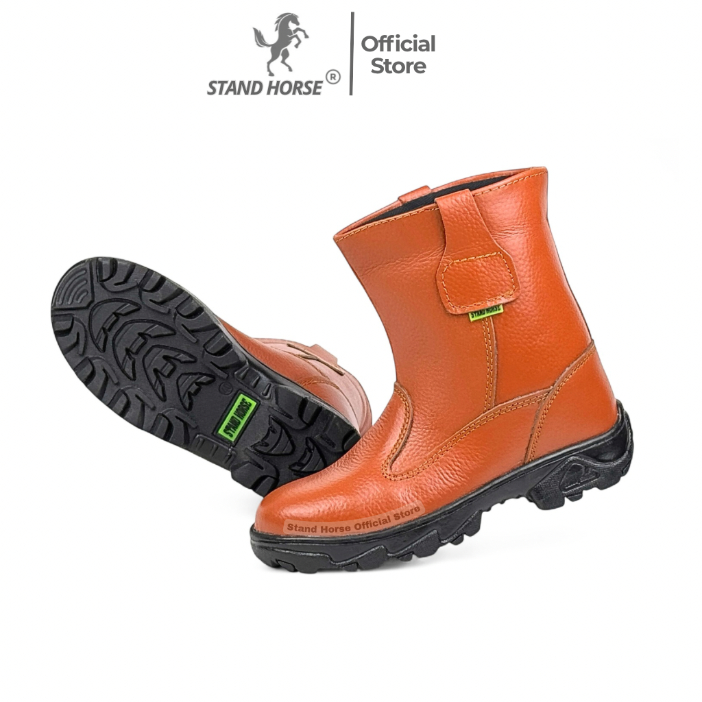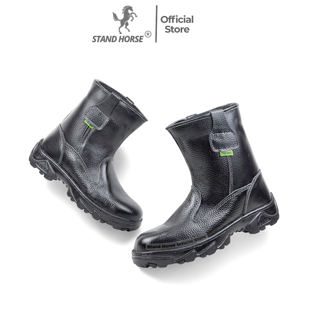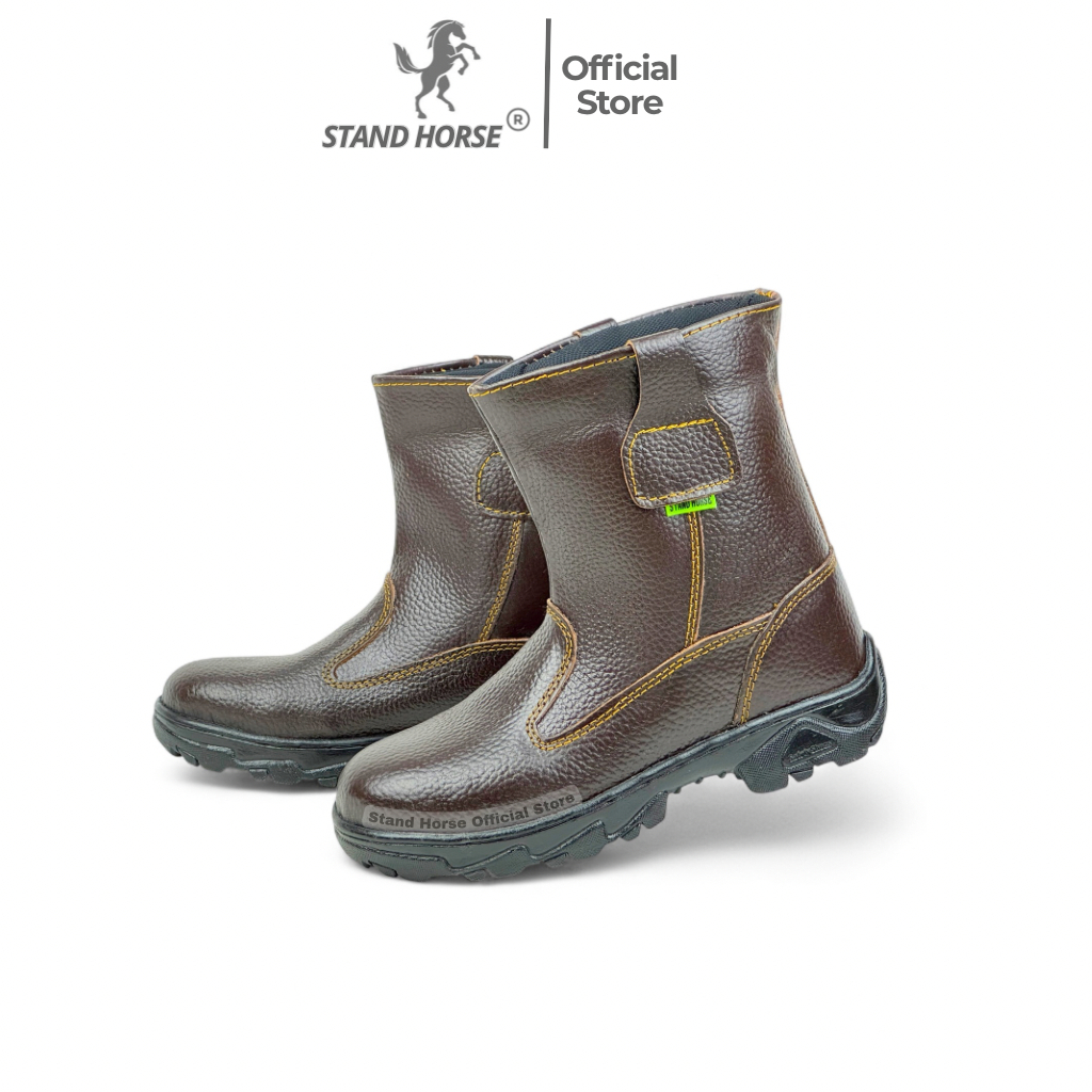 Sepatu Safety Boot Proyek Lapangan Stand Horse 807B Kulit Sapi Asli Ujung Besi