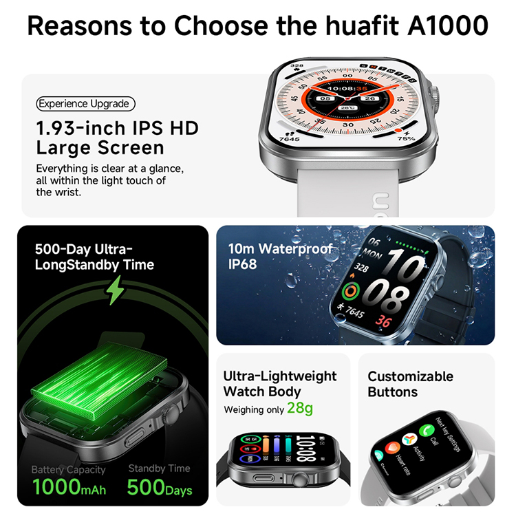 New Huafit A1000 Smartwatch Baterai 1000mAh Layar 49*40mm Strava Support Panggilan Bluetooth Kalkulator Waterproff 1ATM