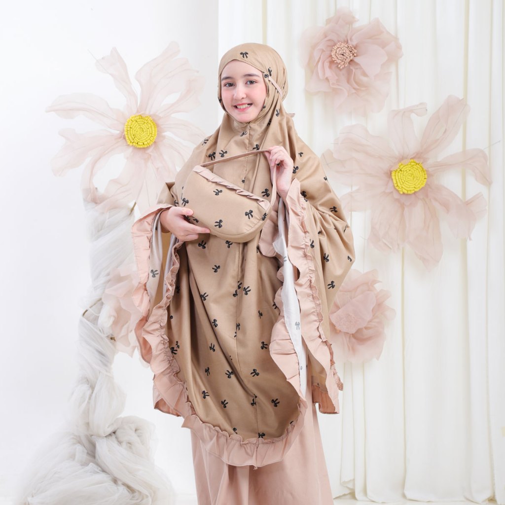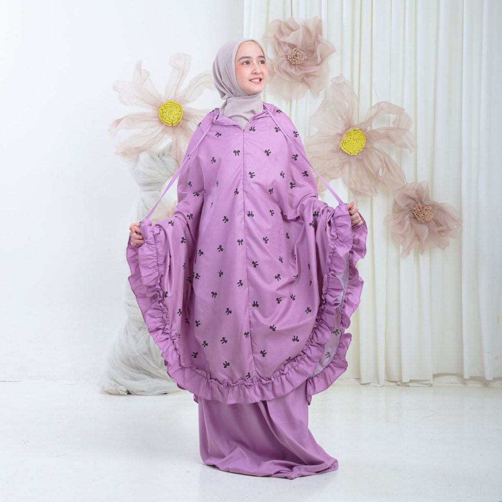 Mukena Anak Usia 6-12Th Katun Motif Remple Premium Kombinasi Resleting Dagu 2in1