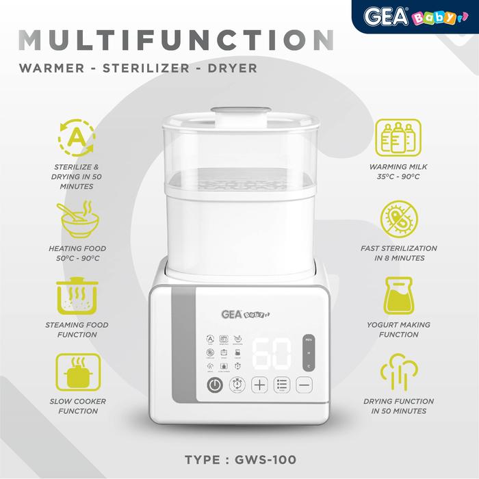 GEA BABY MULTIFUNCTION WARMER STERILIZER DRYER GWS 100 / PENGHANGAT SUSU / STERILISASI / SLOW COOKER - GREY