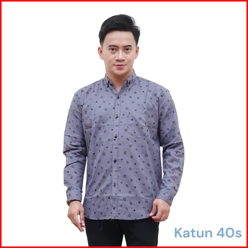 Kemeja Motif Lengan Panjang Pria Atasan Casual Printing Premium Lengan Panjang M L Xl