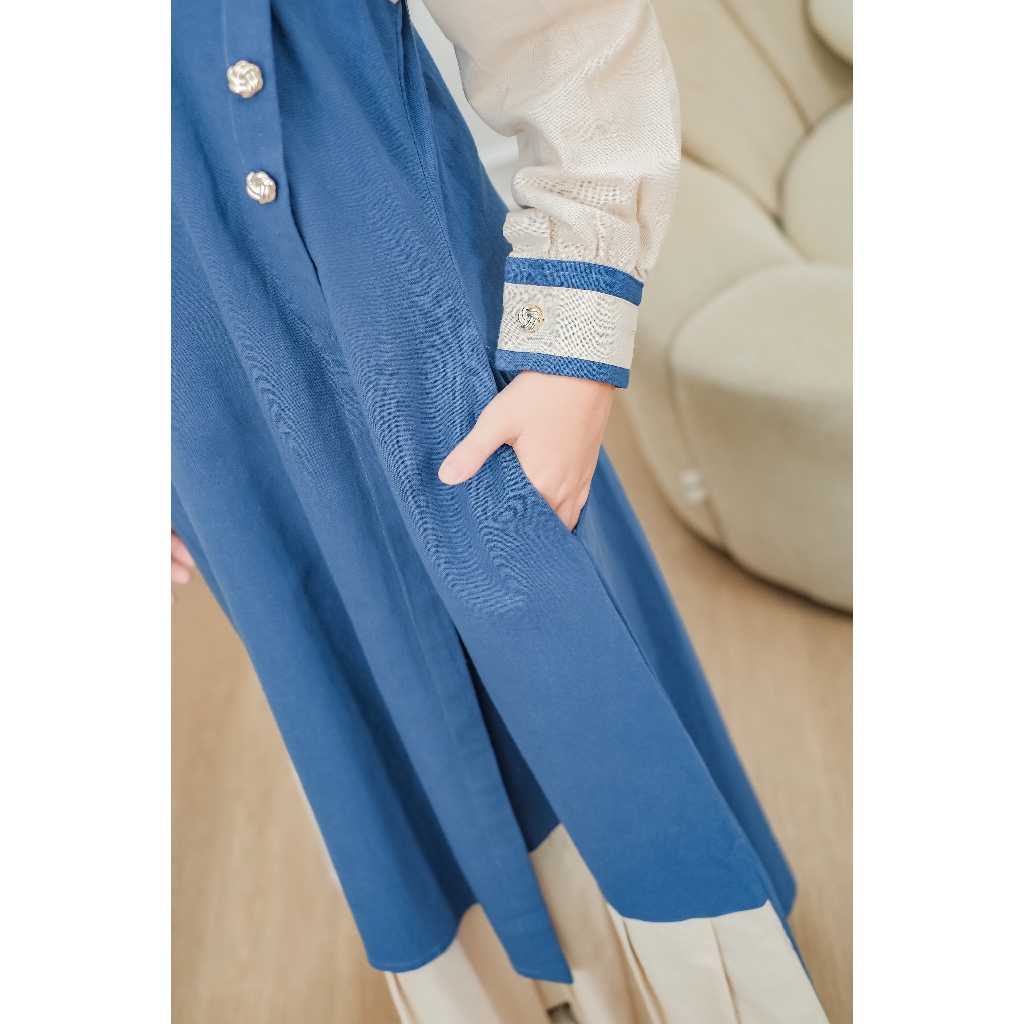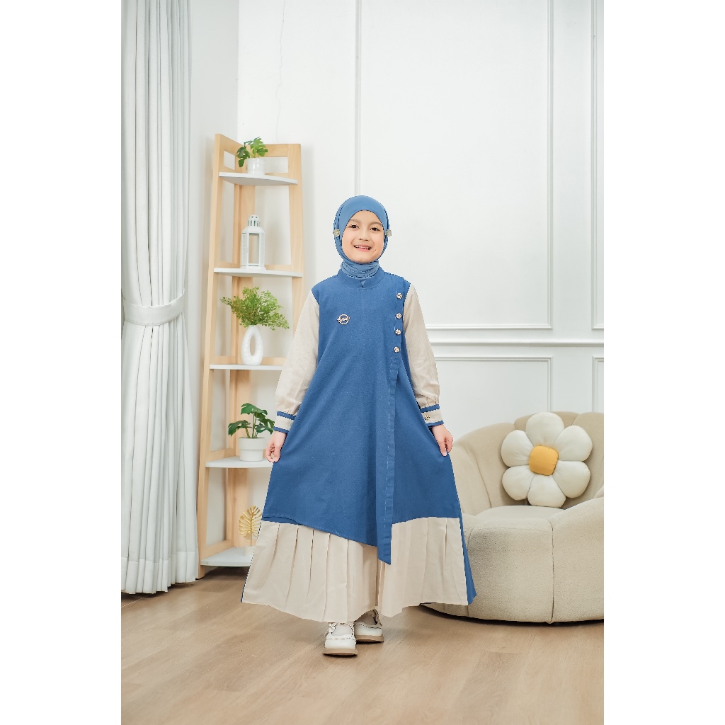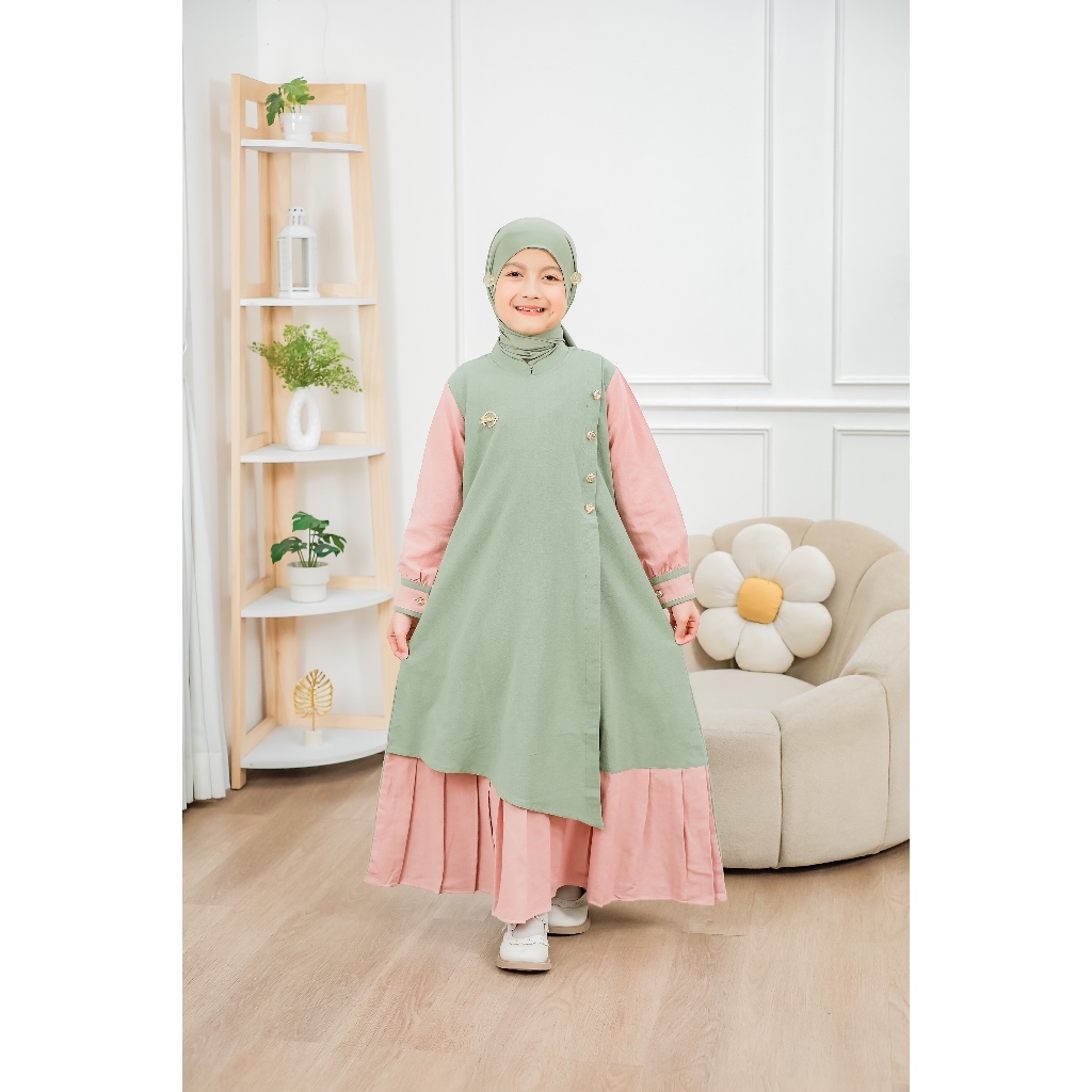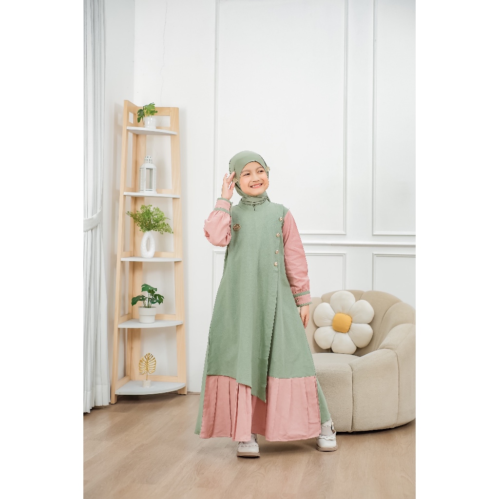 Vazeera Gamis Anak Katun 4–12 Tahun Kombinasi 2 Warna – Dress Muslim Anak Nyaman Harian