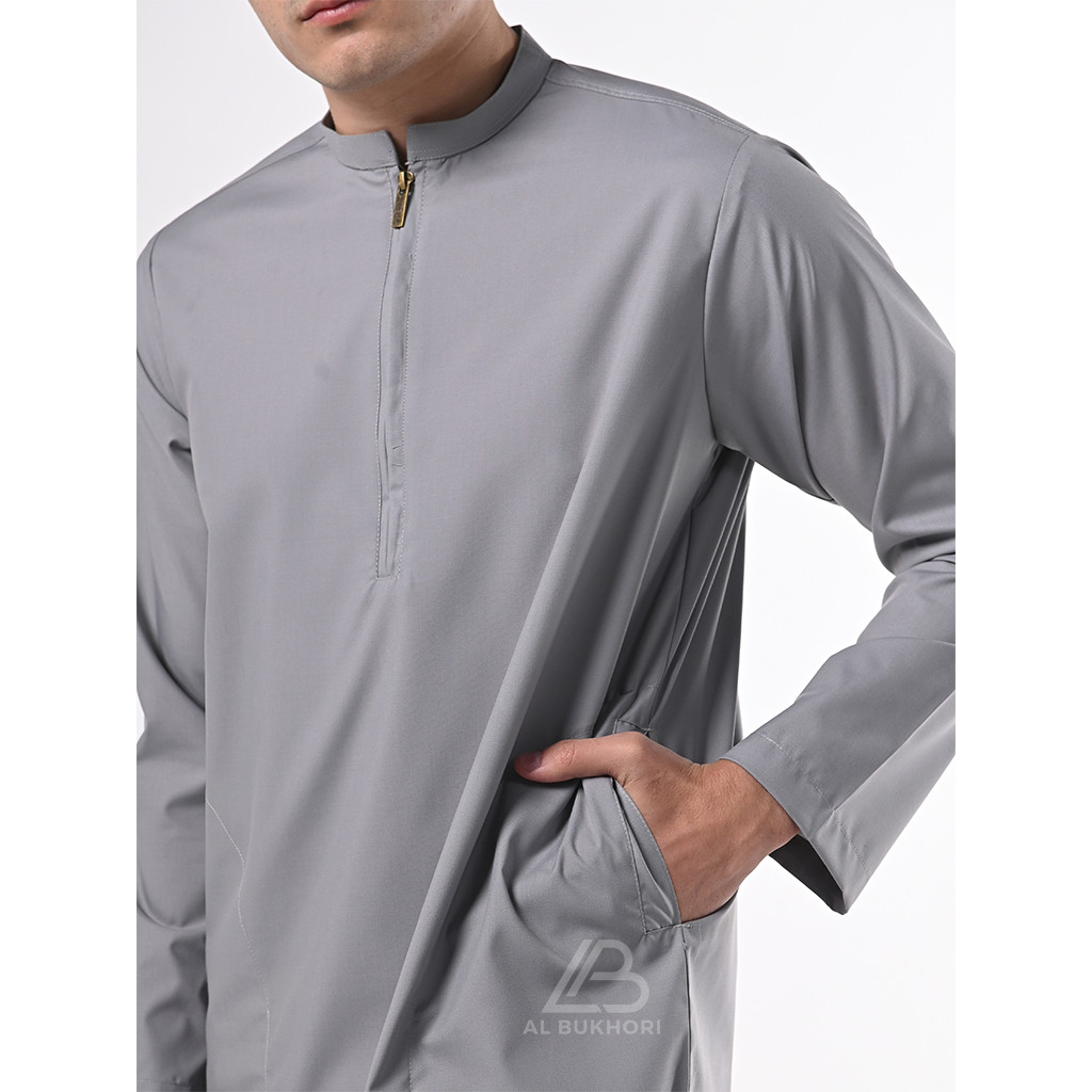 Al Bukhori - TENCEL Koko Jubah Muslim Kurta Set Pakistan Pria Dewasa Lengan Panjang - Kurta Kazeem