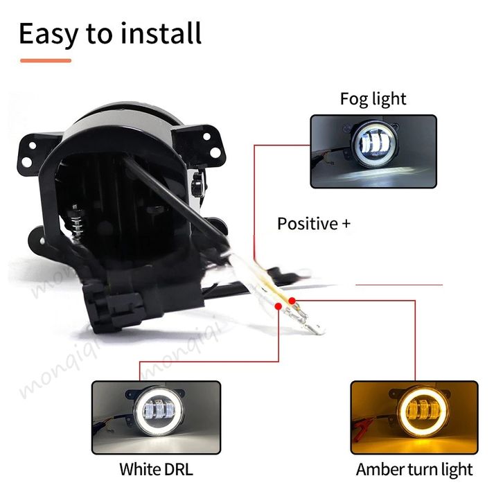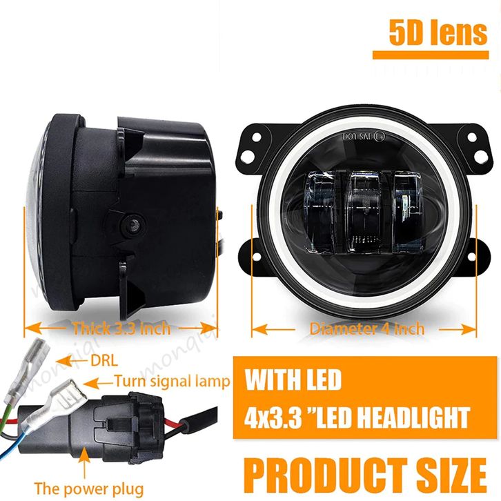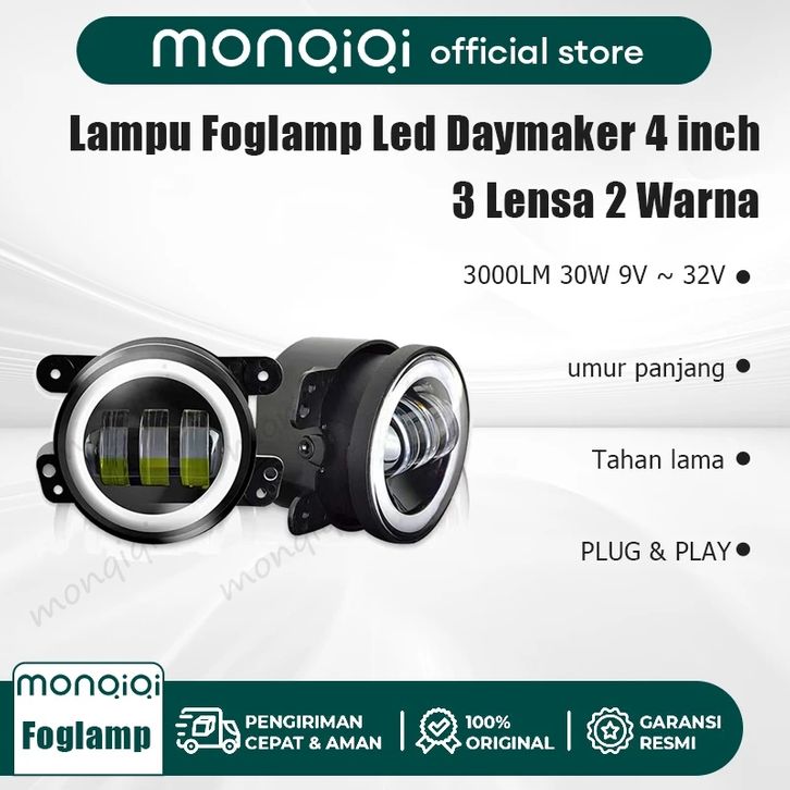 Lampu Kabut LED Monqiqi 2PCS Sepeda Motor Mobil 4 Inch 3 Lensa Full Ring 2 Warna