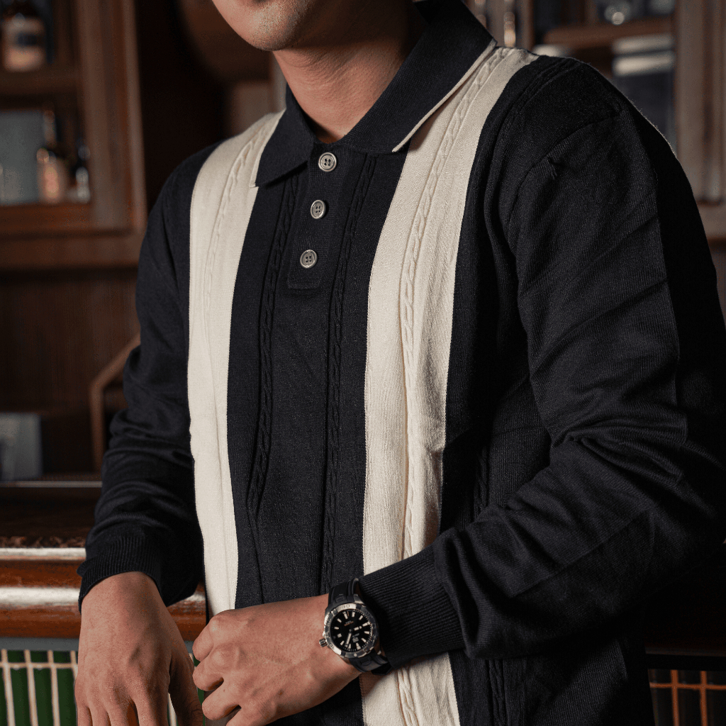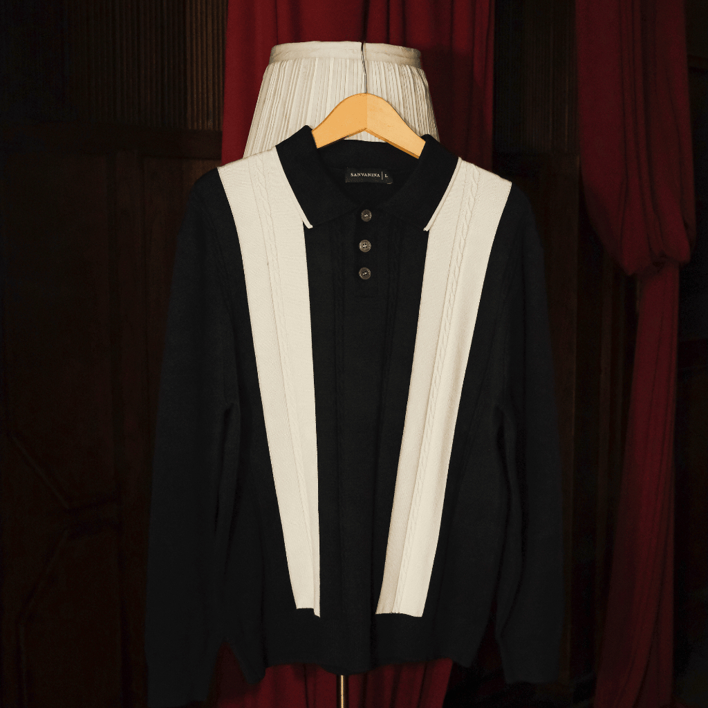 Sanvanina Coppen Long Button Polo Shirt | Atasan Polo Knitwear Lengan Panjang Pria Casual
