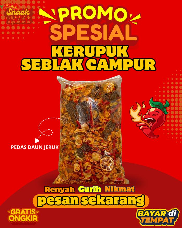 Seblak Campur Kerupuk Mix 1Kg Pedas Daun Jeruk Renyah Gurih || Kerupuk Seblak Campur Mix Kerupuk Jengkol Basreng Makaron