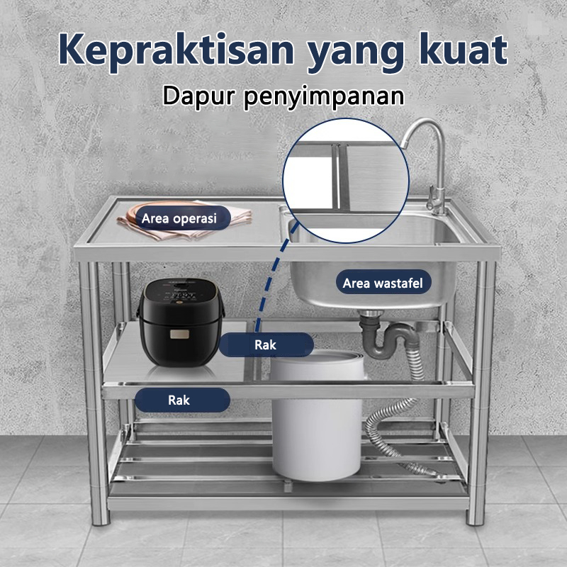 Sus 304 Wastafel Cuci Piring 120X50Cm Menebal Bak Cuci Piring / Wastafel Stainless / Wastafel Portabel Set / Wastafel Cu