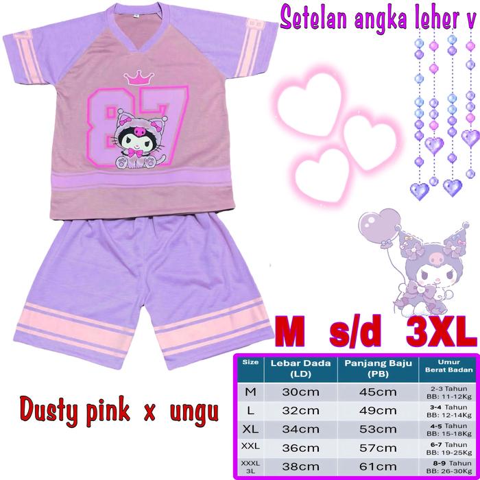 Setelan Anak Perempuan Leher V Motif Angka / Setelan Anak Cewek Gambar Angka / Setelan Anak Jersey Leher V - M, Dusty Pi