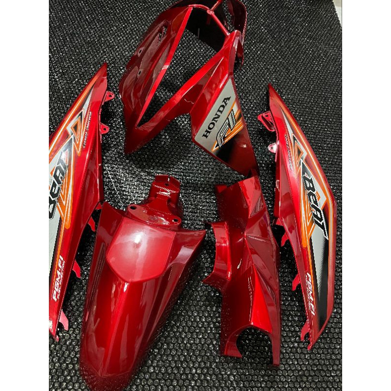 Cover full body halus Honda beat fi warna merah marron plus striping