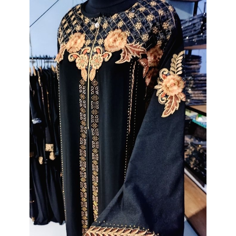 Gamis Abaya Hitam Turkey Bahan Jersey Mix Ceruty Bordir / Baju Busana Maxi Dress Muslim Wanita - Mayra