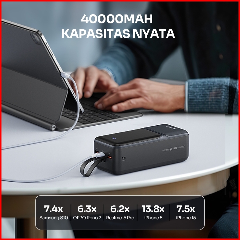 Robot Powerbank 40.000mah Rt40 Fast Charging Black Gray Original - Garansi Resmi Robot 1 Tahun