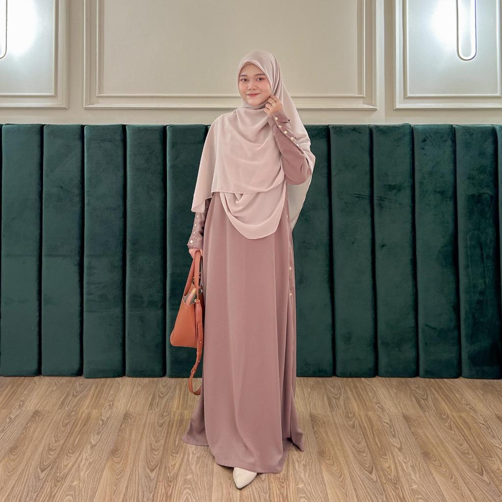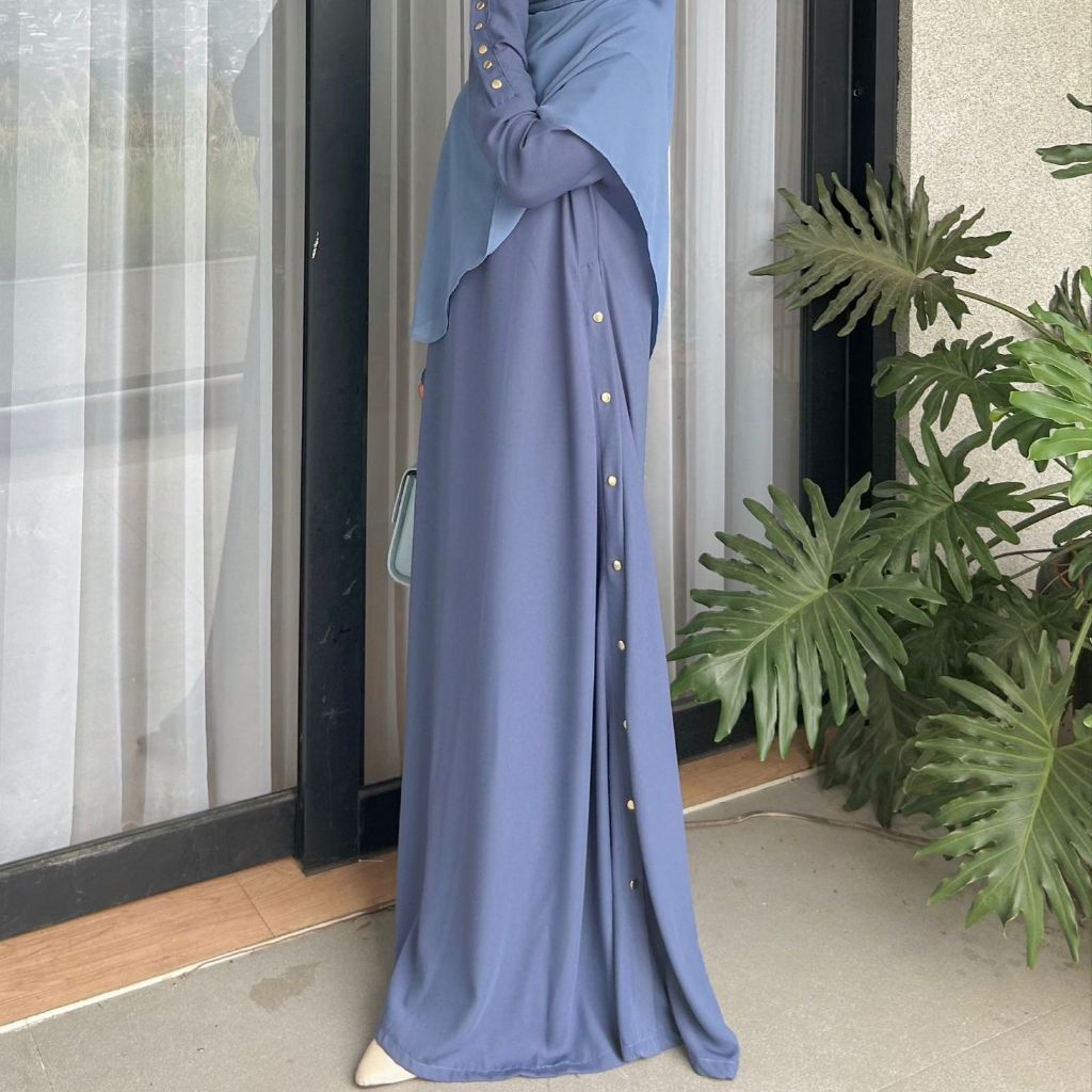 Gold Button Abaya Dress Monaco Material XS-3XL