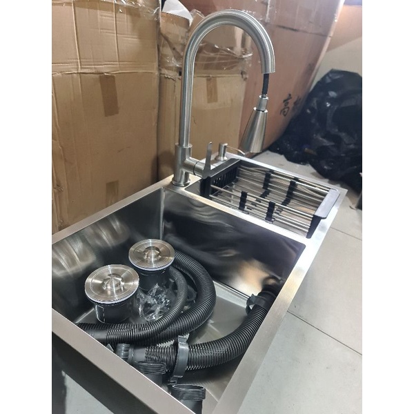 Kitchen Sink 8245 / Wastafel Bak Cuci Piring 2 Lubang Tebal Stainless Sus304 Tebal 3Mm 82Cm Paket Komplit