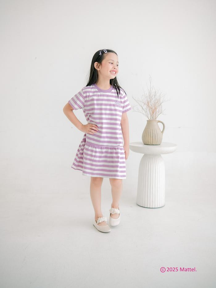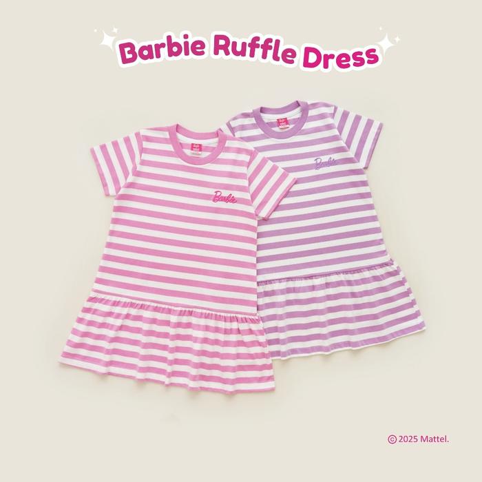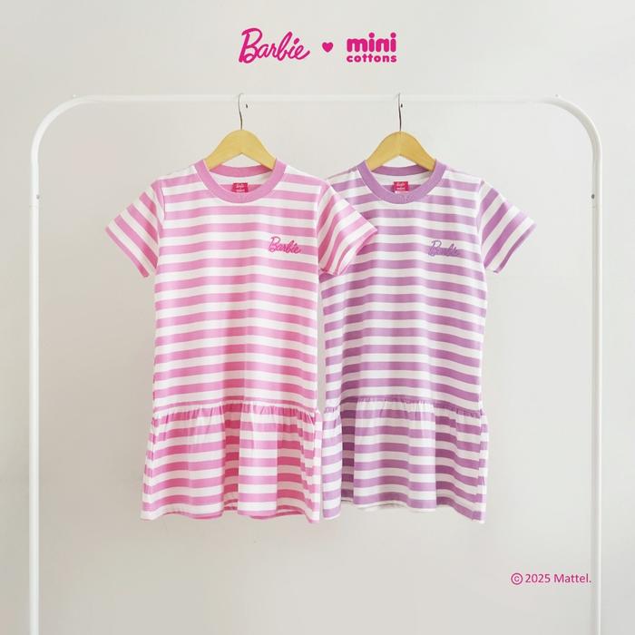 Barbie X Minicottons Stripe Ruffle Dress Salur Baju Anak Perempuan 3-10 Tahun - Pink, 3-4 Tahun