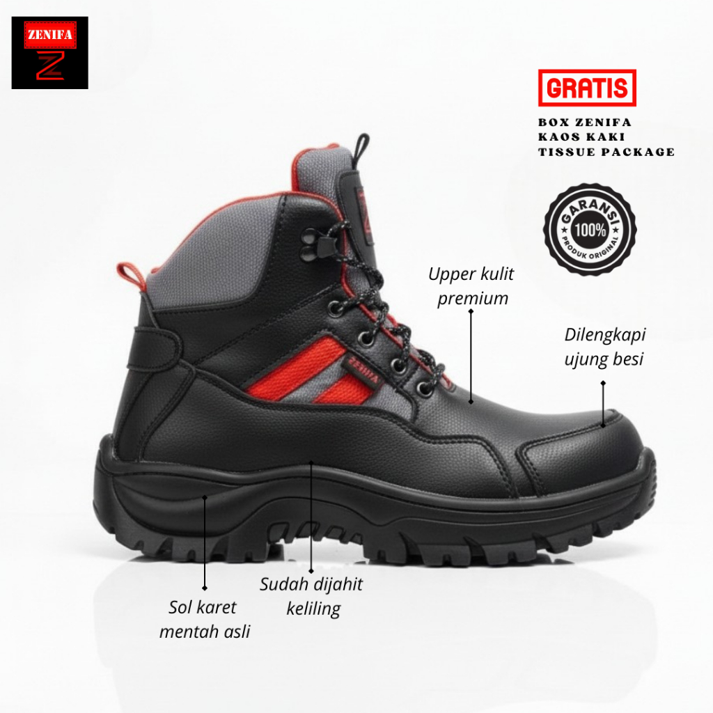 Zenifa - Sepatu Safety Zenifa Hikers Boot Pria Tinggi Size 39-43