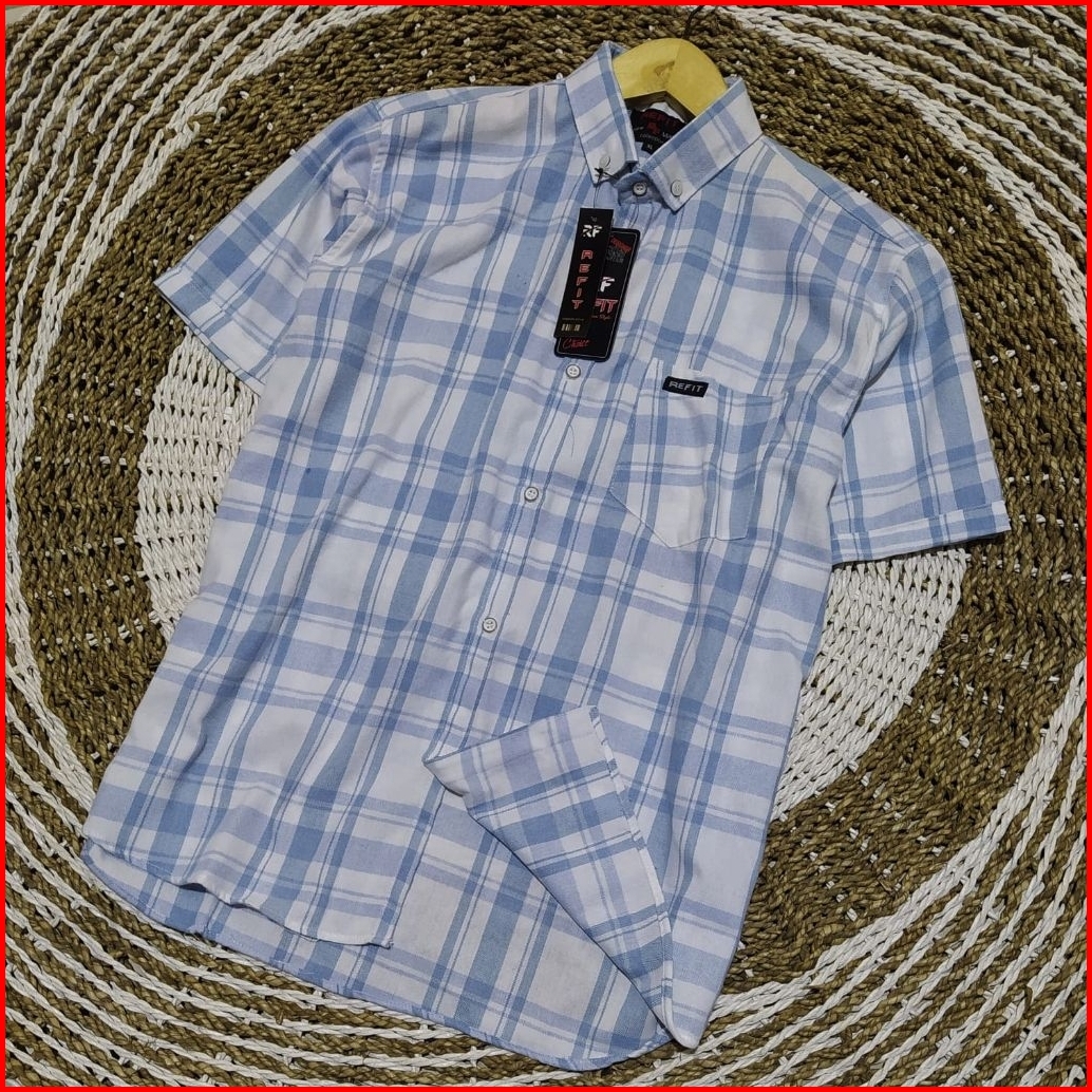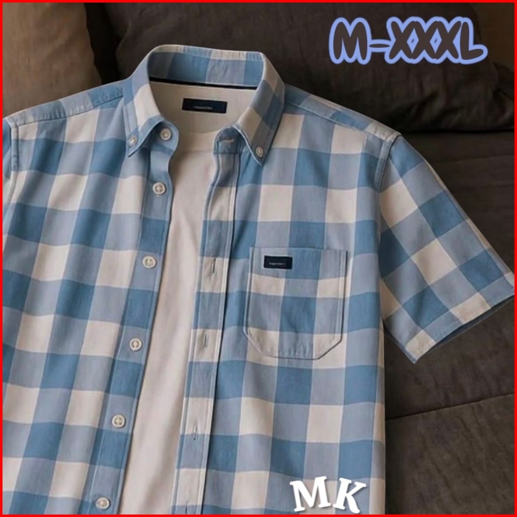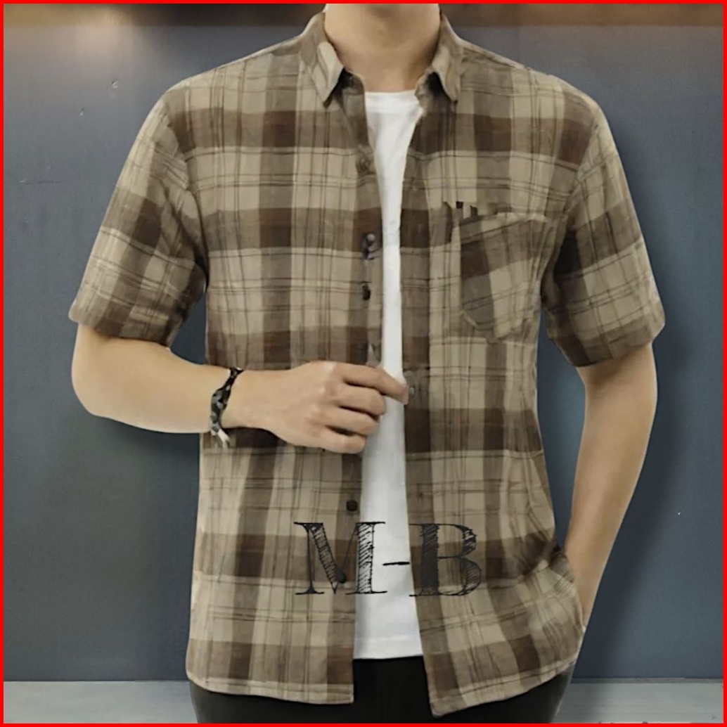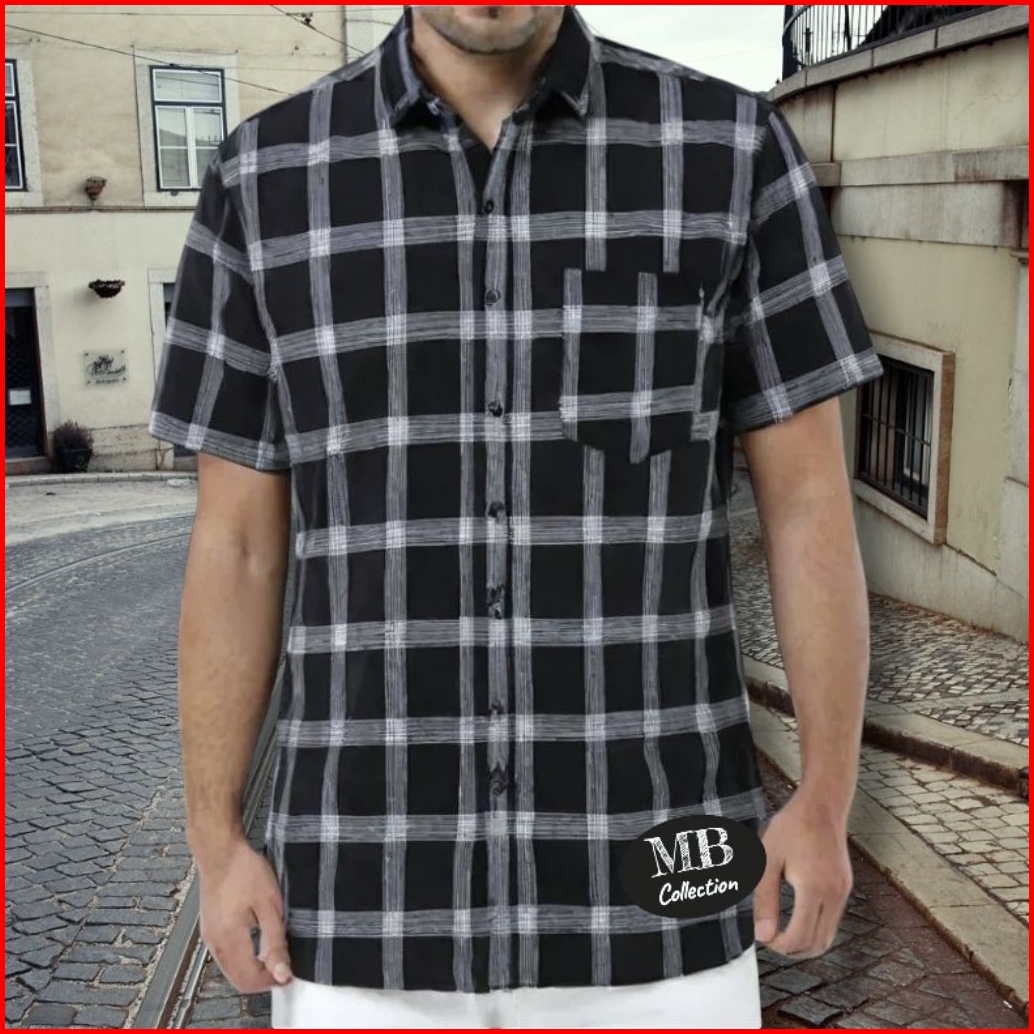 Kemeja Lengan Pendek Kotak Catur Pria Dewasa Kain Flanel Super Ukuran Standar Sampai Oversize