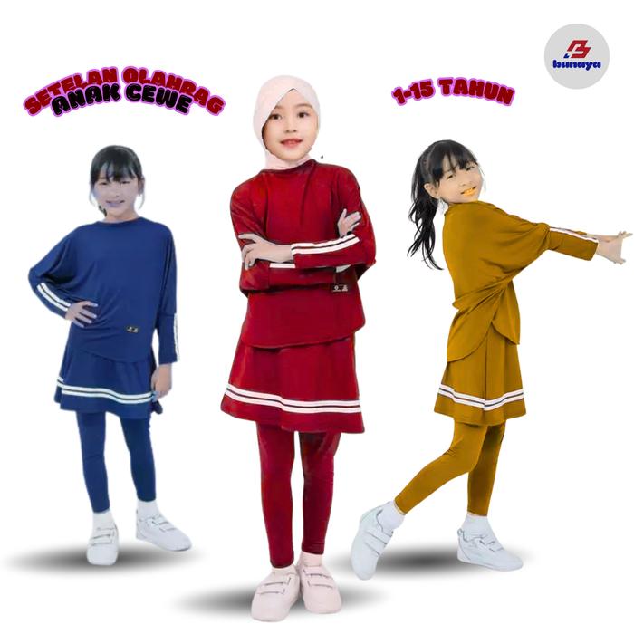 Setelan Olahraga Anak Cewe Usia 2-15 Tahun Bahan Premium Spandek Jersey - Hitam, S