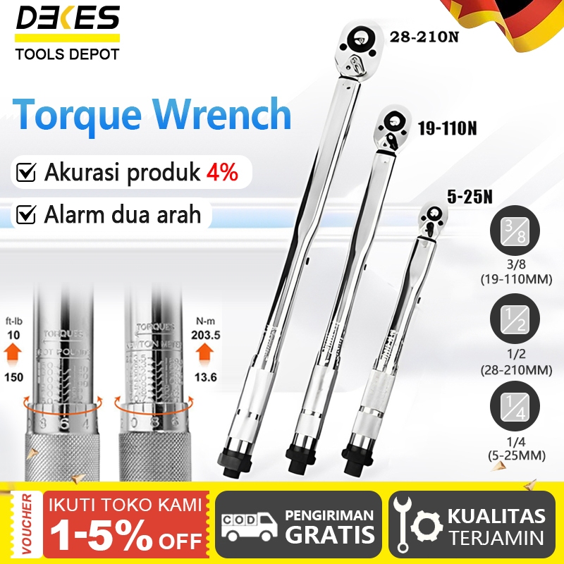 Dekes Kunci Pas Ratchet Telescopic Quick Release Kunci Torsi Momen Moment Torque Wrench Two Way Spanner 1/4 Torsi 5-25Nm