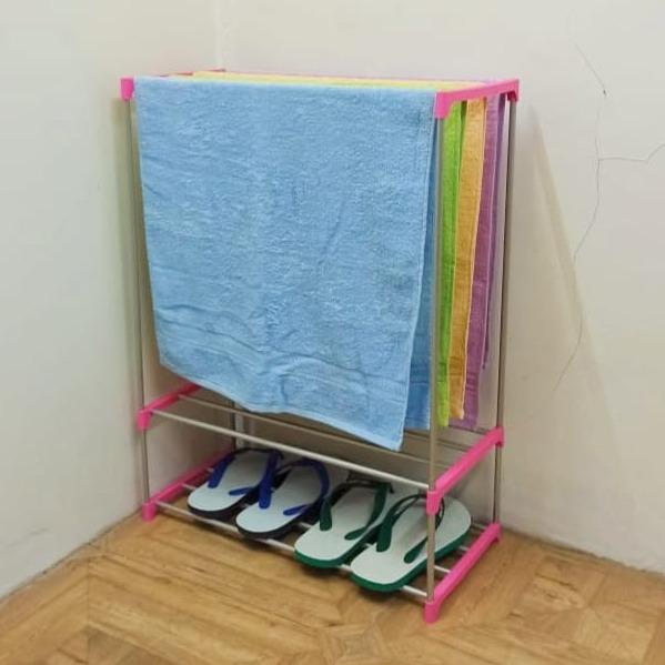 Jemuran Handuk Alumunium 4 Baris Warna Minimalis - Biru Muda