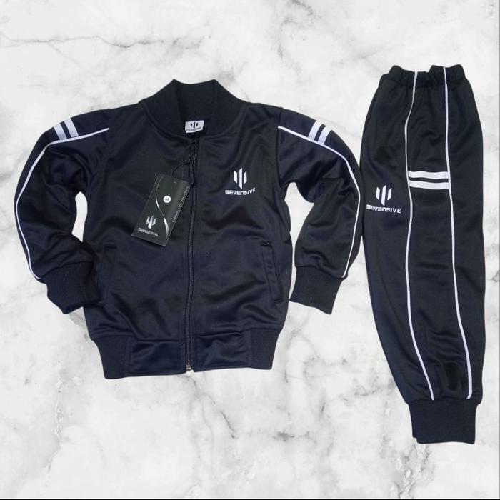 Setelan Anak Sevenfive Neon Jaket Tracktop Dan Jogger Satu Set - Fashion Anak Ukuran Lengkap Celana - Hitam, S